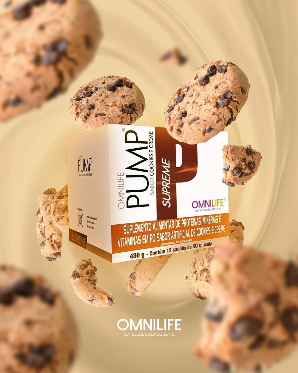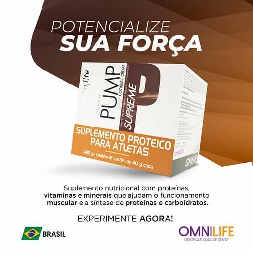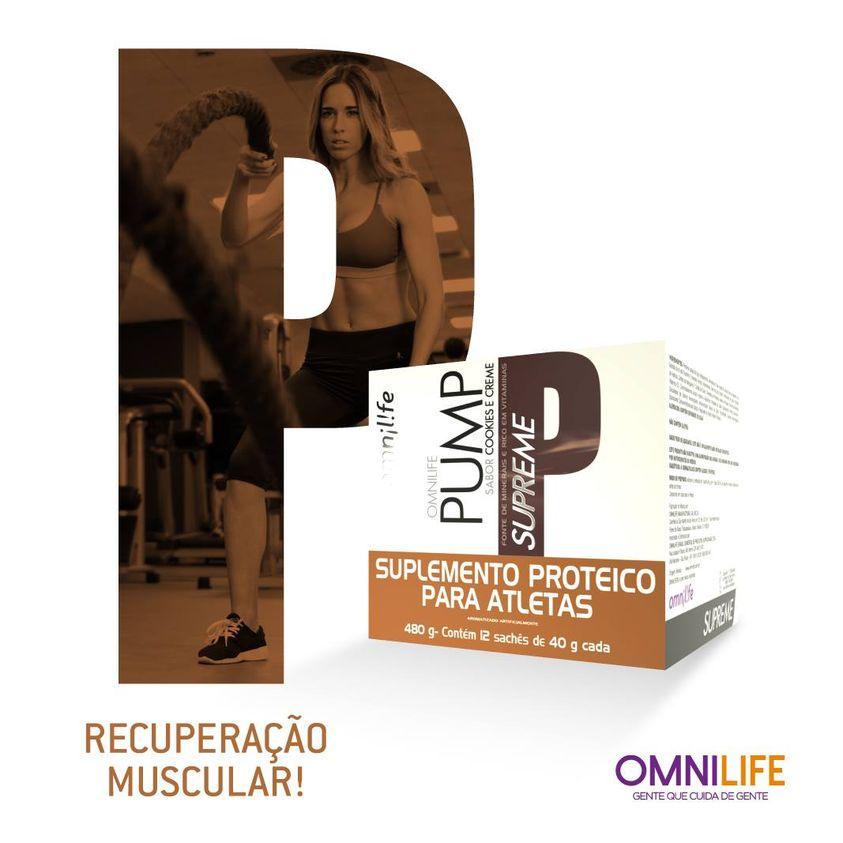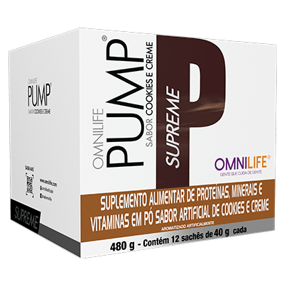 PUMP Supreme es un suplemento alimenticio en polvo con sabor a galletas y crema, formulado con proteínas, vitaminas y minerales. Cada porción de 40 g aporta nutrientes esenciales que complementan tu dieta diaria, en una opción práctica y sabrosa.